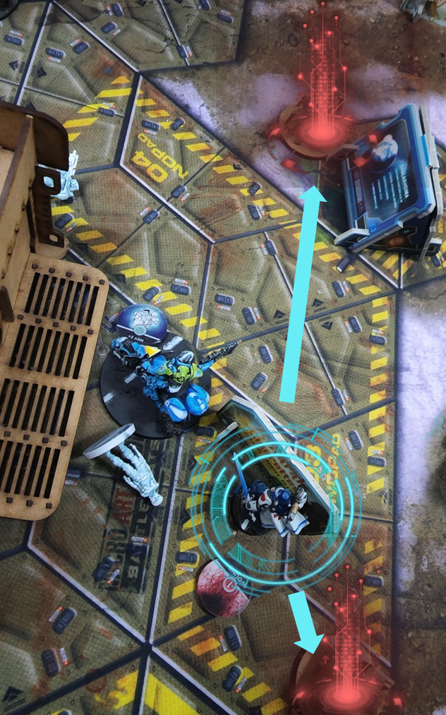 퉁구스카 측은 메딕으로 행동불가된 유닛 둘을 살린다 / 해킹으로 적 태그를 공격한다 / 상대가 콘솔을 건들지 못하게 한다 의 세 가지 선택지 중 결국 오더 수의 압박으로 세 번째 선택지를 택합니다.