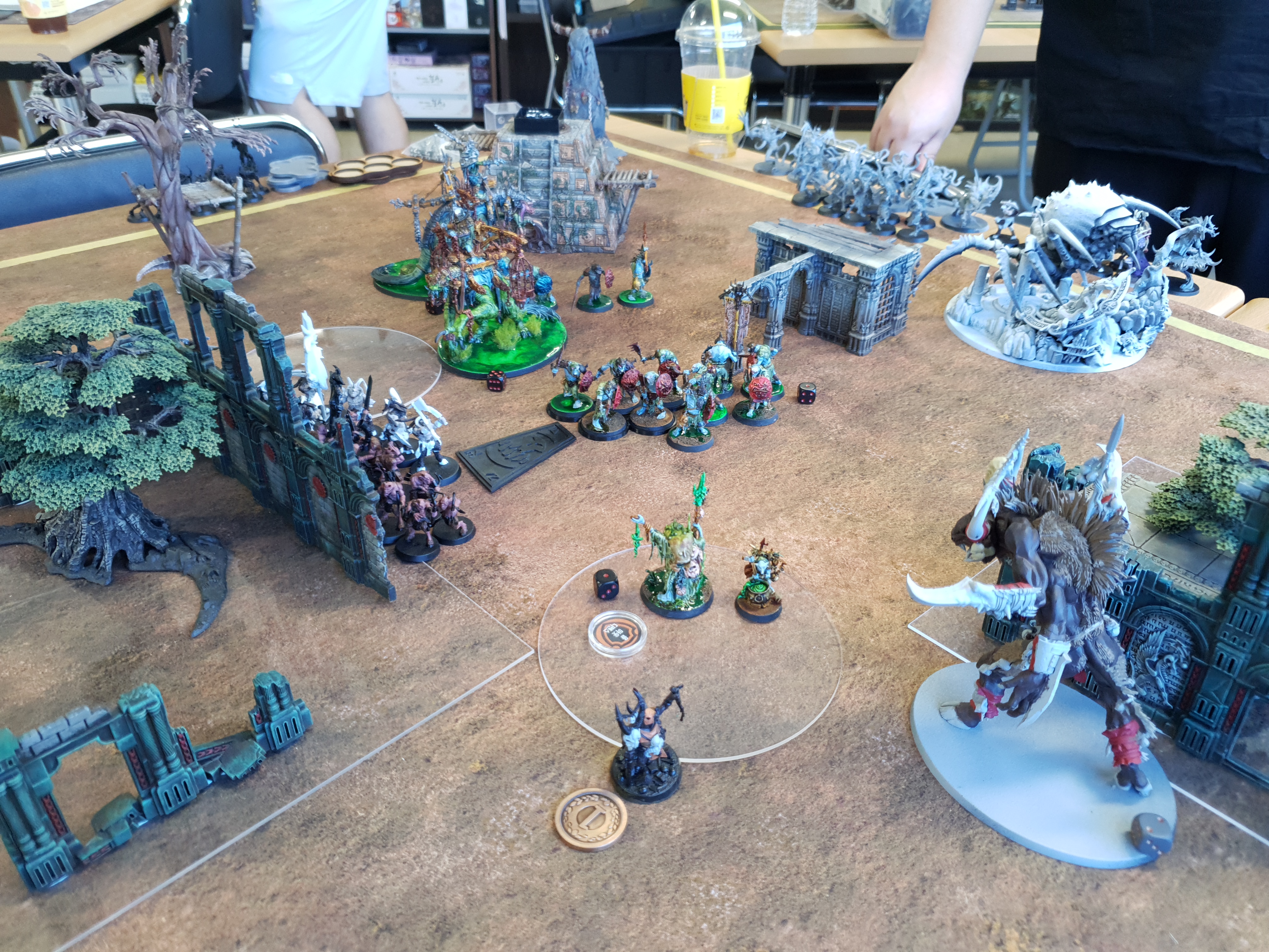 화들짝 놀란 크룰은 후턴을 받자마자 최대한 앞으로 나아갑니다. 상대적으로 병력 빼기 어려운 우측 옵젝에 왕거미를 떨구고 좌측의 옵젝 근처에 나타난 언고어 레이더스에겐 스컴드렉과 것리파을 보내 택틱과 필드 장악을 노려보지만, 스컴드렉이 7인치 차지에 실패해 것리파가 레이더스에게 잡혀버리는 참사가 일어납니다.